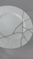 Tiffany Terrace Plate – White 7.25" Ceramic with Gold Repair